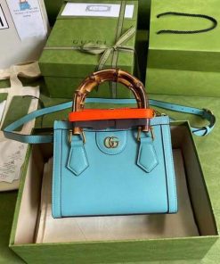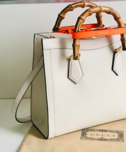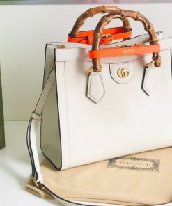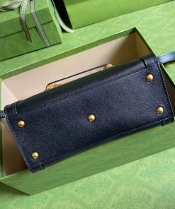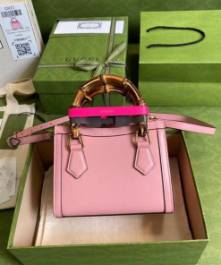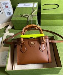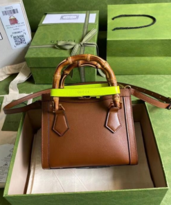 The Gucci Diana, which was redesigned with detachable neon leather belts—a tribute to the practical bands used to keep the handles in shape—is an extension of a bamboo handle tote that was initially released in 1991 and symbolises the idea of style in perpetual evolution.A little replica of the iconic style is displayed here in black leather.