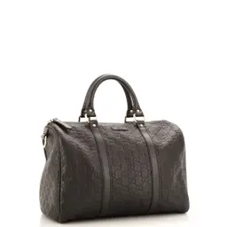 Carrying your everyday necessities in flair is made possible by this stunning Gucci Brown Guccissima Leather Joy Medium Boston Bag. It has silky leather trim and a lovely calfskin leather with GG embossing. Its interior is ideal for storing your everyday necessities. Without it, you won’t want to leave home!
