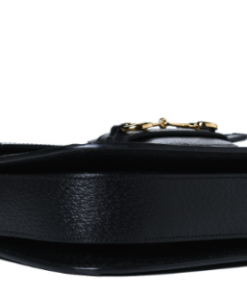 In black and ivory, this is a genuine GUCCI Jacquard Black Denim GG Monogram Textured Dollar Calfskin Horsebit Shoulder Bag from 1955. This chic shoulder bag is made of timeless black denim with the GG monogram. The bag has a gold horsebit accent and a leather shoulder strap that loops. The top flap opens to reveal a beige, divided interior with patch pockets and a zipper.