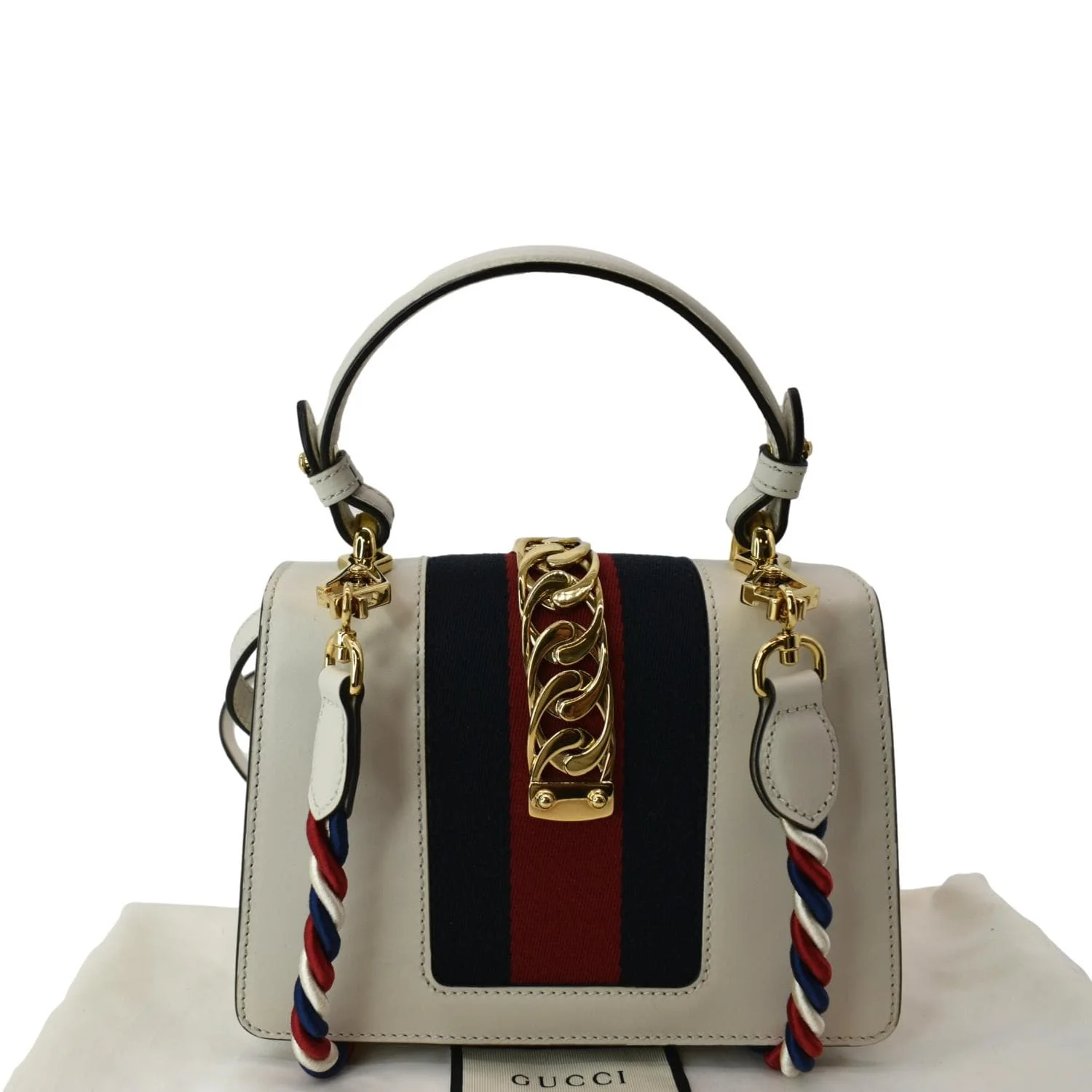 GUCCI Sylvie Mini Leather Top Handle White Bag
