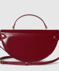 With a new Double G fastening, this half-moon-shaped top handle bag from the women’s Fall Winter 2024 runway reimagines an old design. When turned, it produces a clicking sound and is made using a special cutting technique. This Gucci Rosso Ancora red small size comes with a detachable shoulder strap and an outer pocket.